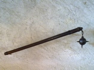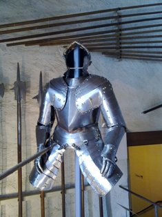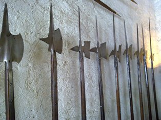 Mit Helebarde, Gartonschwärt, Gulisse schlö si dry...